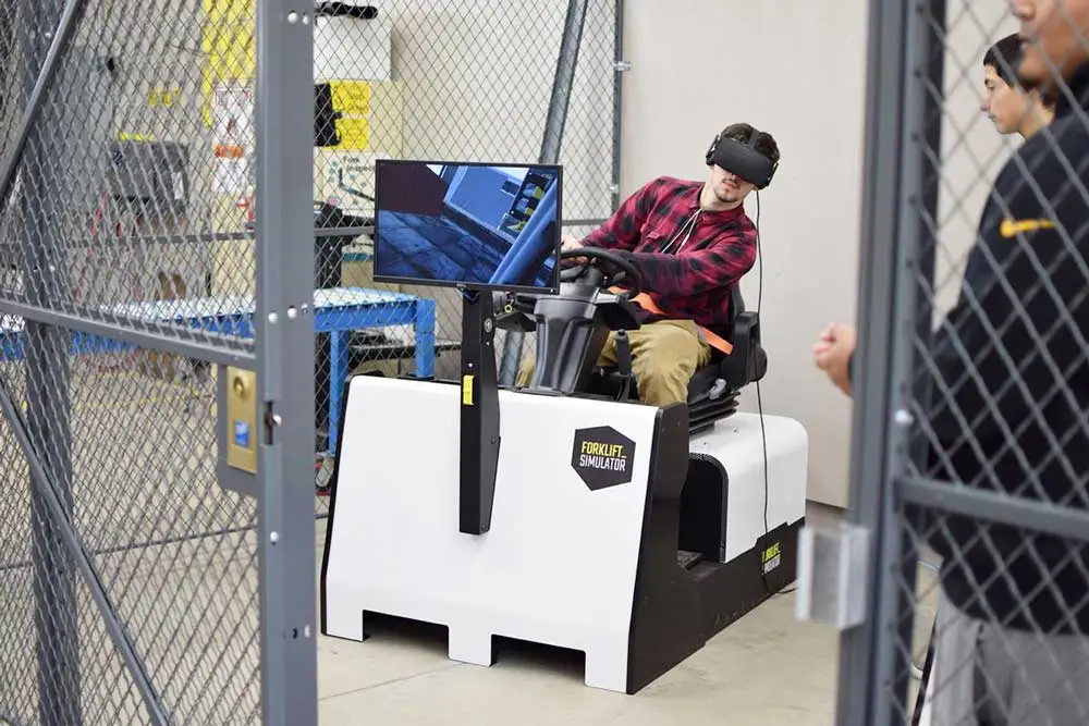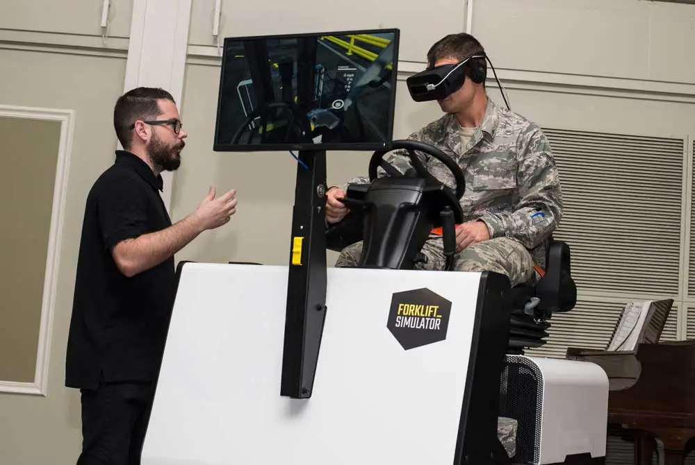 The US Airforce during a training on the Sit Down Counterbalance of Forklift-Simulator.