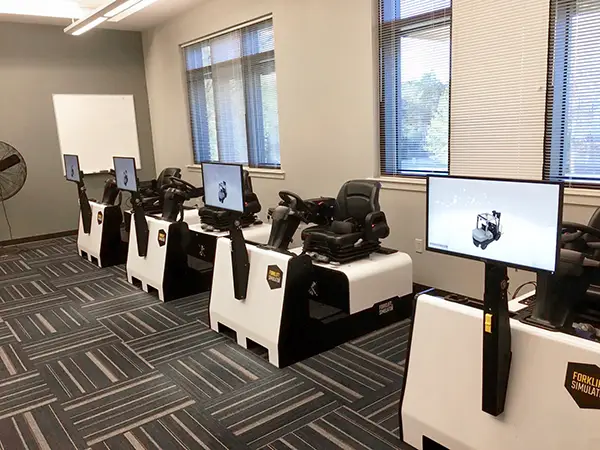 Explain the purpose and benefits of Virtual Forklift Simulation. Explain the concept of vection, the discomfort people feel discomfort when the movement they see doesn’t match the movement they feel. Be willing to explain your own experience with vection. There’s no shame in admitting you know how it feels. It will even give them the feeling that it’s ok and may reduce stress in the student. The Forklift-Simulator experiences have been designed to minimize vection, but it can take time for some users to acclimate to Virtual Reality. Those first few visits may be the most crucial for overcoming physical discomfort and confidence.